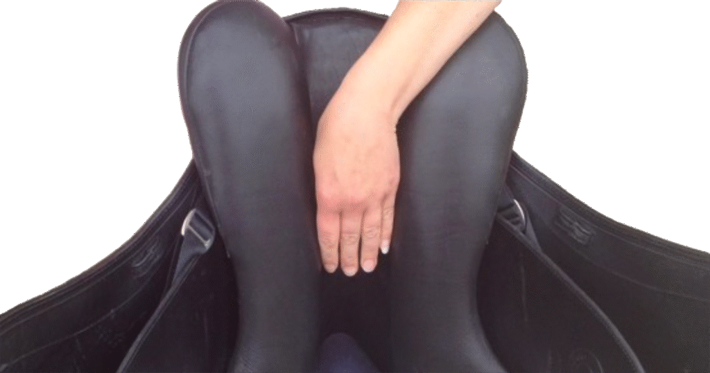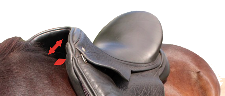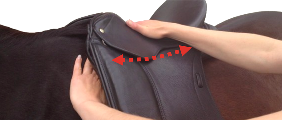 att sadeln dras framåt mot bogbladet och låser hästen.