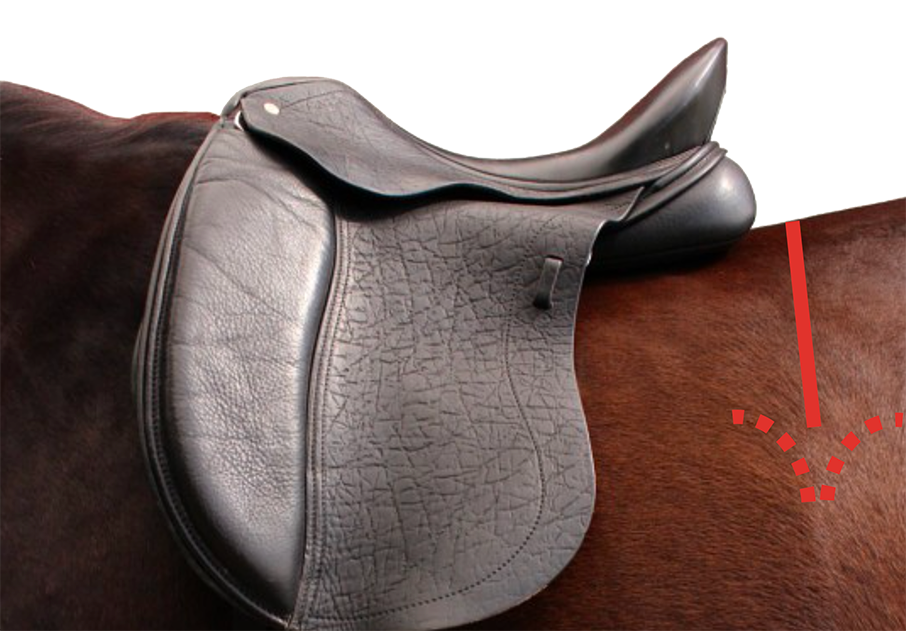 Sadeln måste ligga bakom bogbladet och får inte trycka