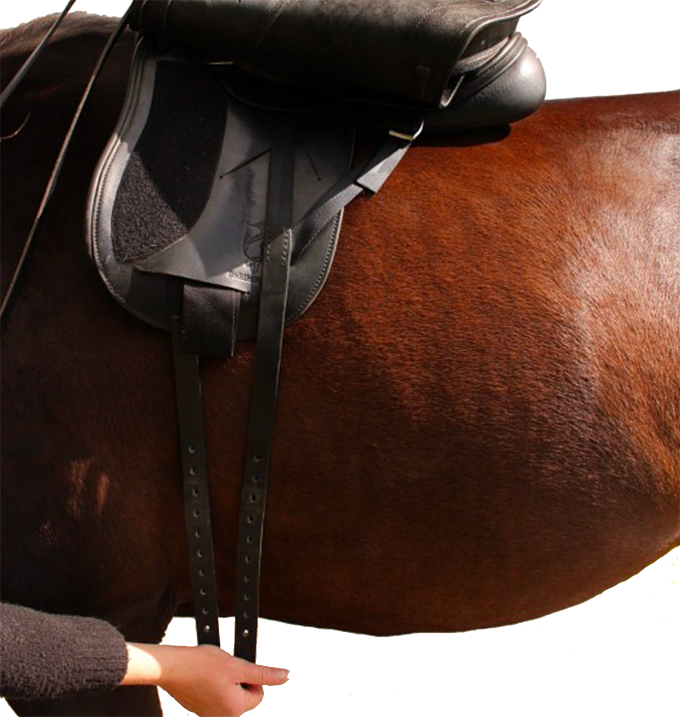 Stropparna skall hänga lodrätt ner i hästens sadel-